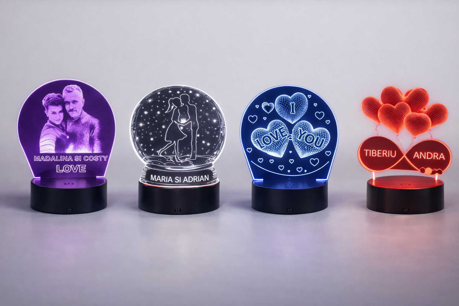 Lampă LED 3D Cuplu Îndrăgostit Personalizată – Nume Gravabil, Lumină LED Romantică