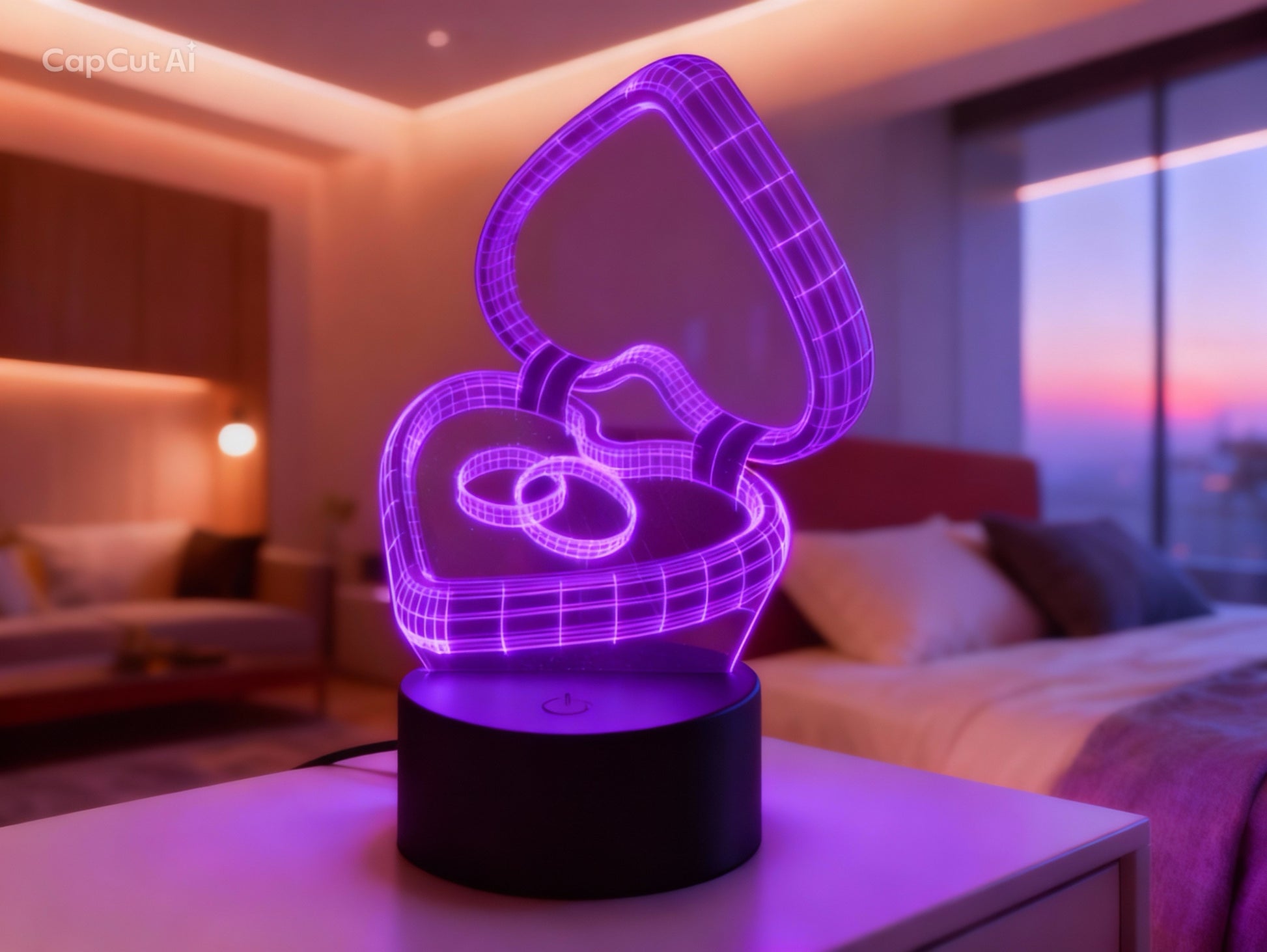 ✨ Perfectă pentru momentele care merită celebrate cu emoție și lumină, această lampă LED 3D în formă de cutie de inel în inimă simbolizează iubirea, promisiunea și începutul unei povești în doi. Iluminarea multicolor adaugă un efect vizual spectaculos, ideal pentru decor romantic.